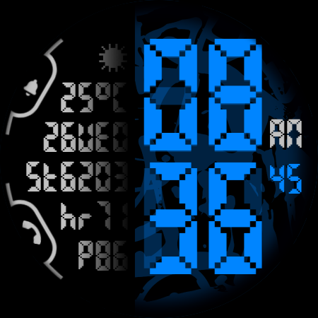 This Wear OS watch face has everything you need - digital time, date, battery level, heart rate, step count, weather info and lots of color options.