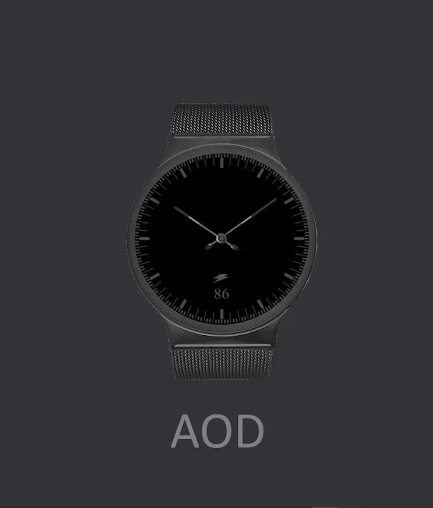 简单方便的混合表盘。有关心率、行驶距离和电池电量的信息。经济、信息丰富的AOD模式。仅适用于搭载 Wear OS 的手表。