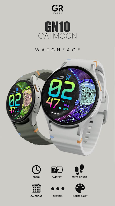 簡單的貓在月球上,用於錶盤佩戴操作系統改變顏色變化***OPPO手錶不支持