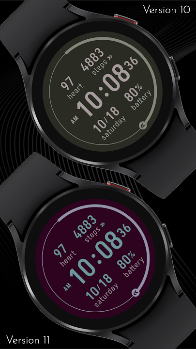 這款時尚而精緻的簡約數位錶盤專為那些欣賞優雅和效率的人士而設計。此錶盤介面簡潔,可顯示時間、日期、心率、步數和電池百分比,所有必需資訊一目了然。透過追蹤您每日步數的圓形進度條保持動力,並從 18 種令人驚嘆的顏色變化中進行選擇以匹配您的風格。