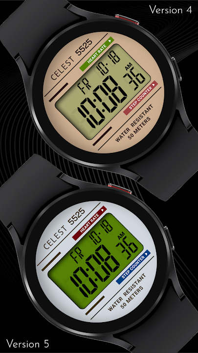 這款活潑的數位錶盤秉承復古美學,散發著懷舊魅力。醒目的數位時鐘以色彩鮮豔的背景為背景,引人注目,心率和計步器元素上方有 2 個隱形複雜功能,您可以將其設置為設備上任何可用複雜功能的快捷方式。這款別緻的腕錶將復古氛圍與現代智慧手錶功能相結合,使其成為尋求獨特且實用錶盤的人們的完美選擇。
