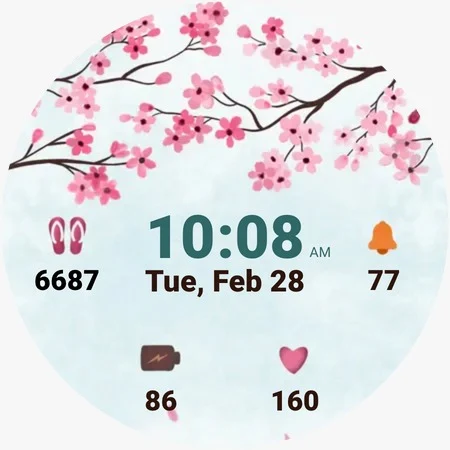 戴上这款带有淡粉色樱花花朵的动画表盘,享受春天的季节!