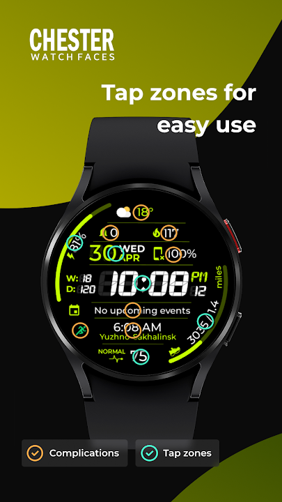 Chester Sport Pro is a powerful and fully customizable digital watch face for Wear OS, designed for active users who value style, convenience, and precise information. Its modern sporty layout and smart features make it the perfect daily companion.