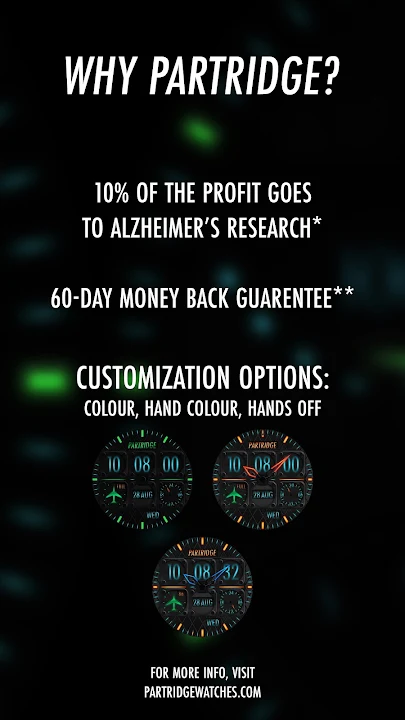 *我承諾將 2025 年和 2026 年利潤的 10% 透過一次性捐贈的方式捐贈給阿茲海默症研究。未來幾年,我選擇的慈善機構可能會有所變更。請造訪 partridgewatches.com 以了解更多資訊。