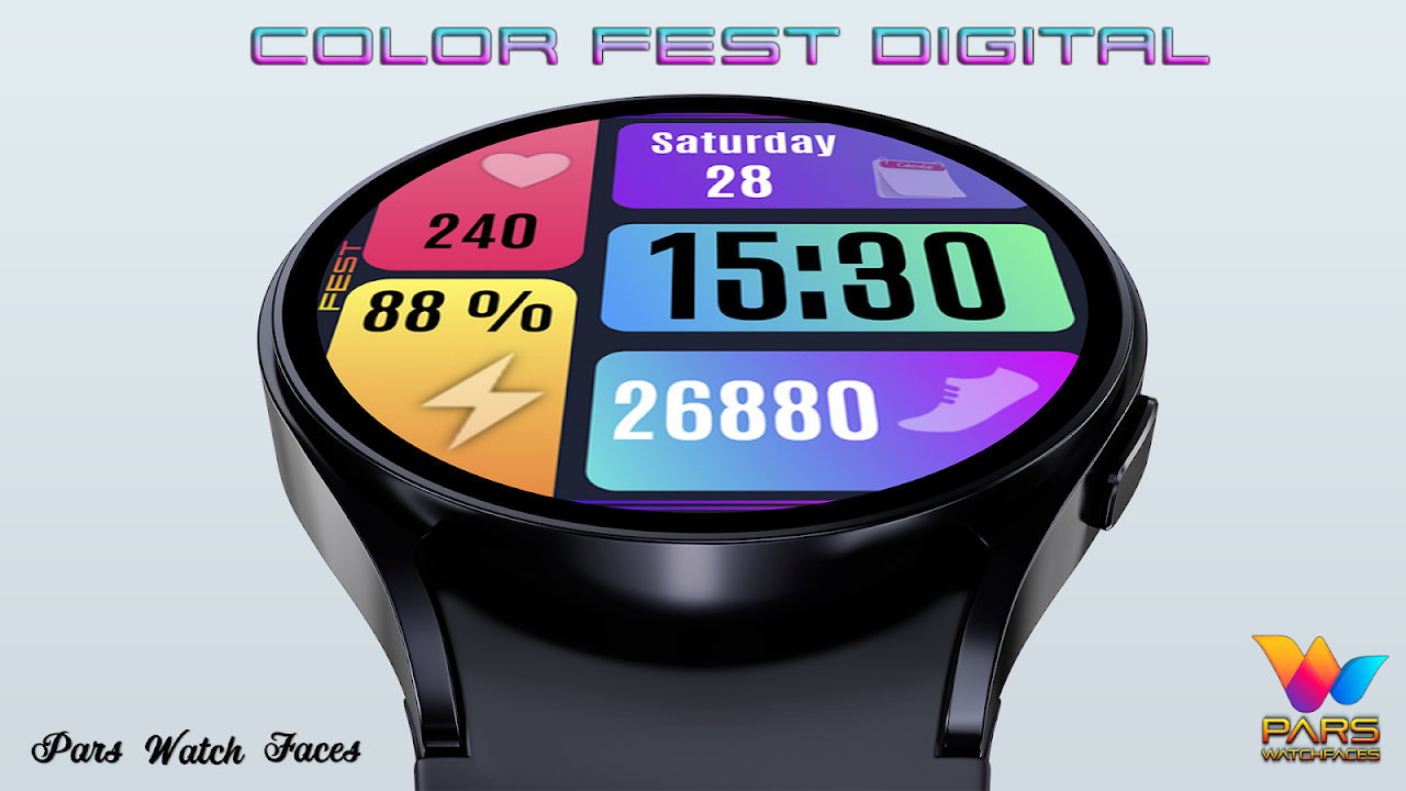 Color Fest Digital Watch Face is compatible with all watches using Wear OS SDK 34 and Api 34+.