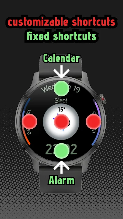 - 2 fixed shortcuts (Calendar & Alarm)