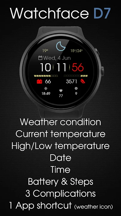 這款兼具功能與美觀的時尚錶盤讓您隨時掌握最新動態。無論您是追蹤健身數據、查看天氣預報,還是專注於日程安排,Watchface D7 都能滿足您的需求。