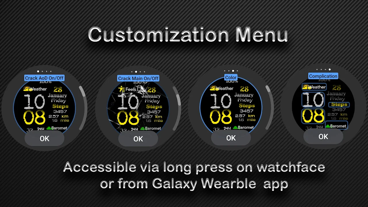 适用于 WEAR OS 3+ 的 WF,具有可由用户打开/关闭的裂纹效果选项。