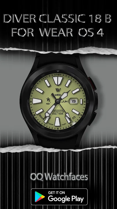 Diver Classic 18 Bright 版本适用于 Wear OS,具有丰富多彩的定制功能。