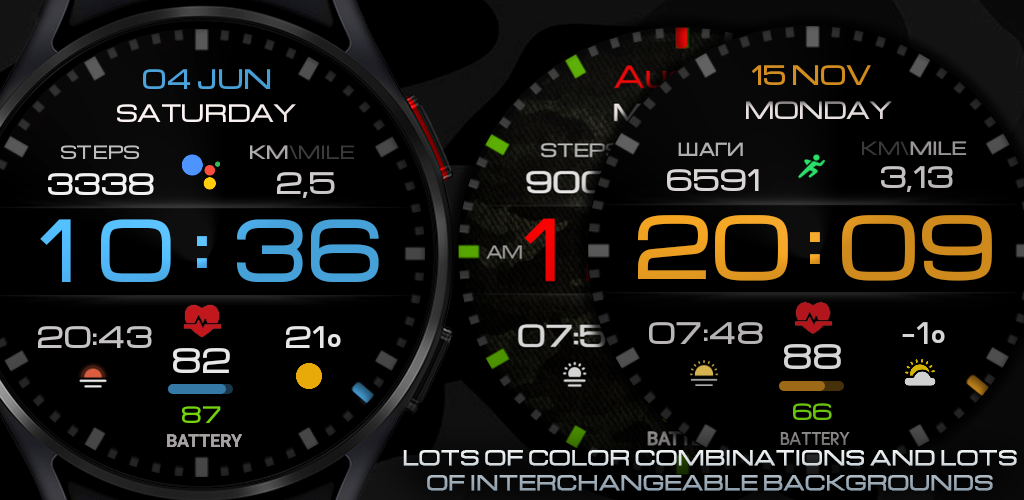 此表盘支持所有 API 级别 30 及以上的 Wear OS 设备,例如三星 Galaxy Watch 4、5、6、7、8 Pixel Watch 等。