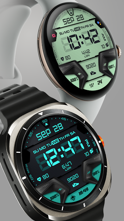 一个简单的数字现实表盘,其背景可以使用深色或浅色主题进行定制。专为 WEAR OS API 30+ 设计,兼容 Galaxy Watch 4/5 或更高版本、Pixel Watch、Fossil 和其他最低 API 30 的 Wear OS。