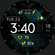 Modern and sporty digital watch face for Wear OS smartwatch.