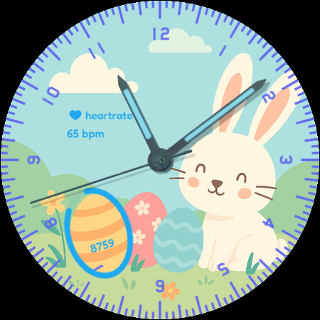 節日復活節兔子錶盤有 2 種背景、多種顏色和複雜功能。