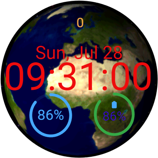 数字旋转地球表盘。配备三个可编辑复杂功能。