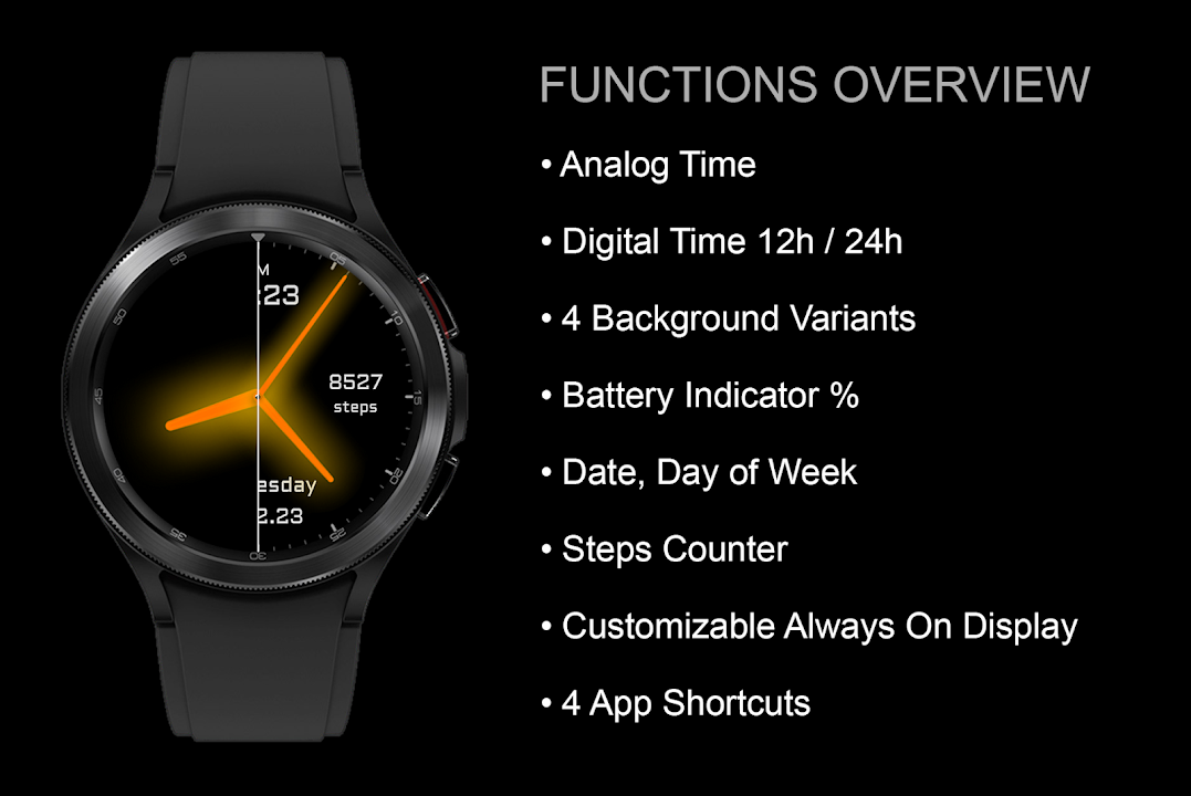 该表盘支持Wear OS 3并兼容设备:三星Galaxy Watch 4、5、6系列等设备。