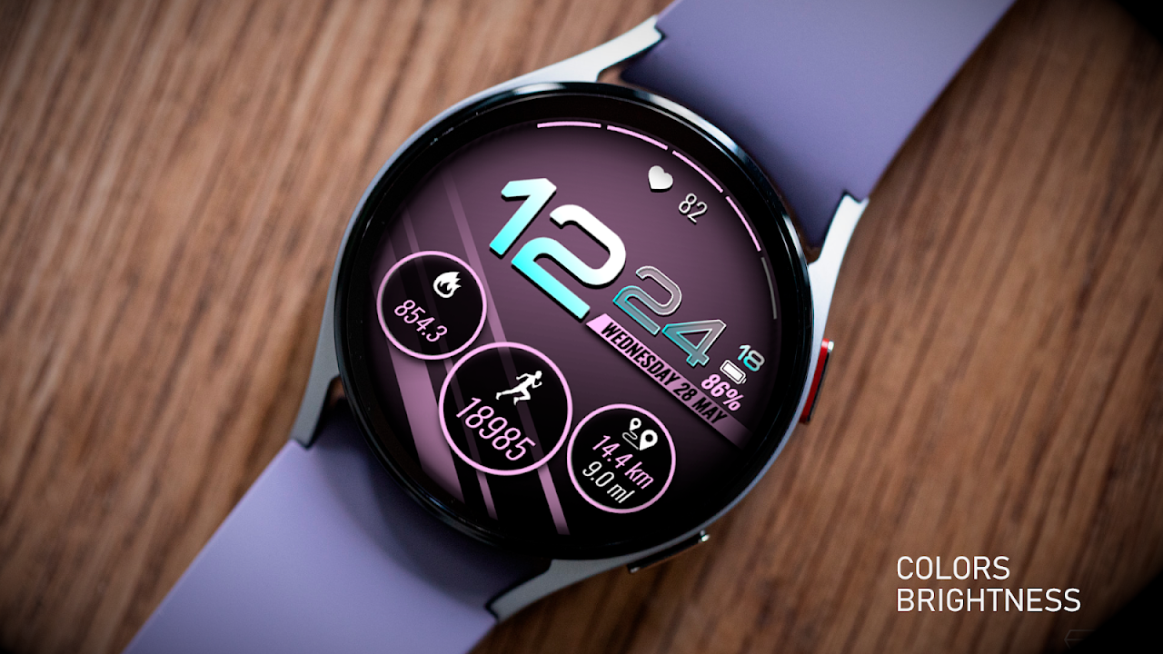 这款表盘适用于 Wear OS 智能手表,提供多种选项: