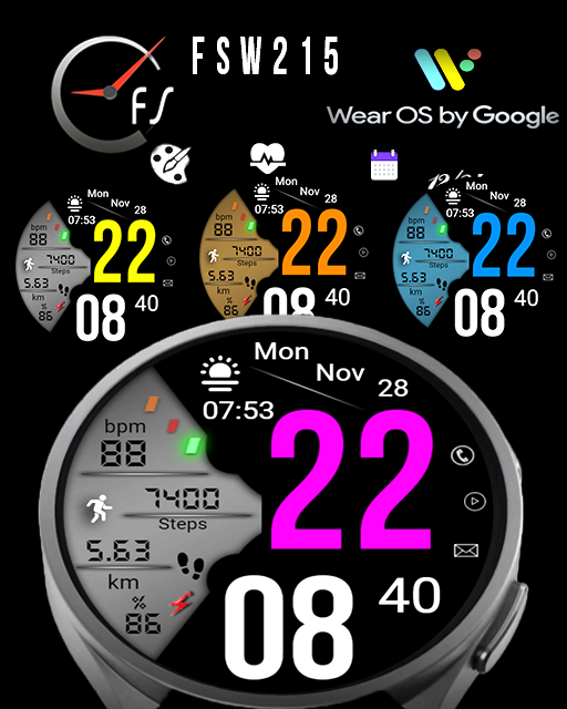The FSW215 is an Digital and analog watch Face for Wear OS by FS Design