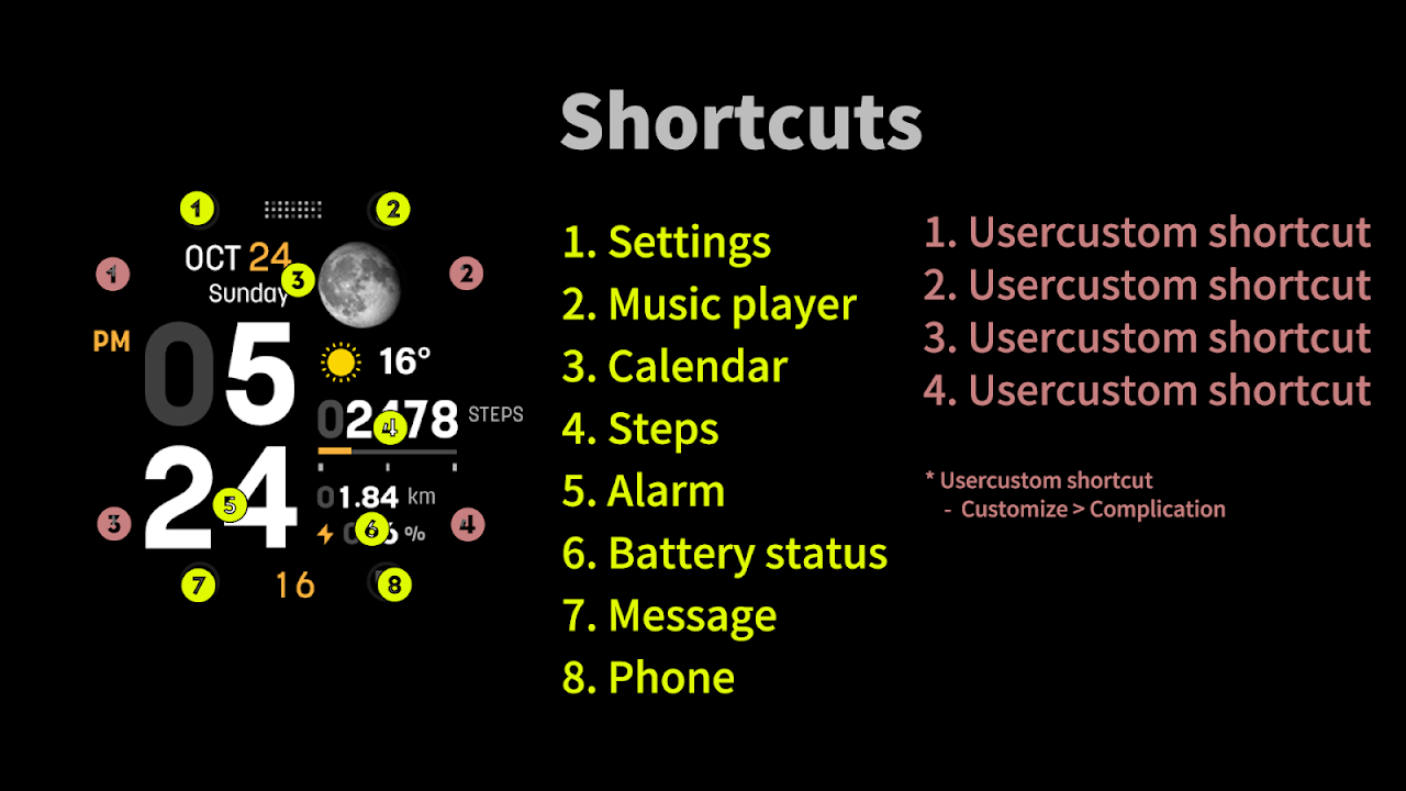 请在手表和智能手机上安装以下链接的附加应用程序,并设置复杂功能。