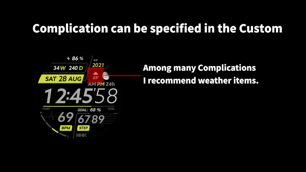 Please install the additional app of the link below on the watch and smartphone, and set up the complication.