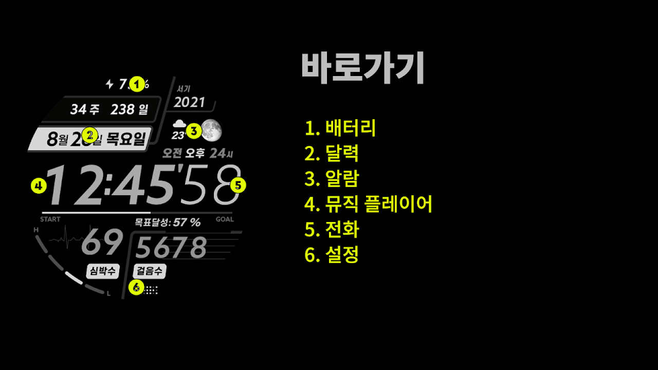 스포티한 감성의 정보구성이 좋은 디지털 워치페이스 입니다.