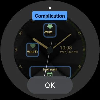 錶盤設計簡潔、素淨、暗黑風格。適用於 Wear OS 智慧手錶。