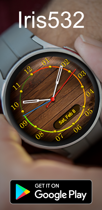 Iris532 是一款簡單的類比錶盤,具有創意木質主題。其主要目的是透過顏色選擇和背景選擇來獲得高可見度。它專為使用 API 等級 30 及以上的 Android 手錶而設計。