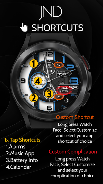 JND0003U 是一款外觀現代的混合數位錶盤,具有高度可見的類比指針和數位格式的時間。高品質且細緻的臉部。功能包括 5 個顏色選項、4 個快捷方式、2 個可自訂快捷方式、1 個可自訂複雜功能、電池、月相資訊、日期、步數和心率。