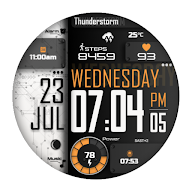 The JND0116 is a high quality modern digital watch face with a lot of customization options and a detailed split stylish design. Features include, 6x Theme Options, 4x Shortcuts, 2x Customizable complications, 2x Customizable shortcuts, Battery, Date, Time Zone, Weather Type, Current Temperature, Moon Phase, Steps & Heart rate.