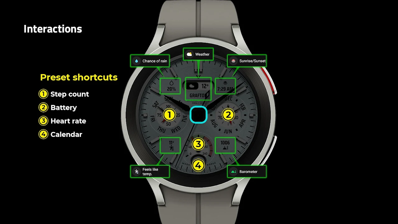 此表盘支持所有 API 级别 30 或更高的 Wear OS 设备,例如三星 Galaxy Watch 4、5、6、7、8、Pixel Watch 等。