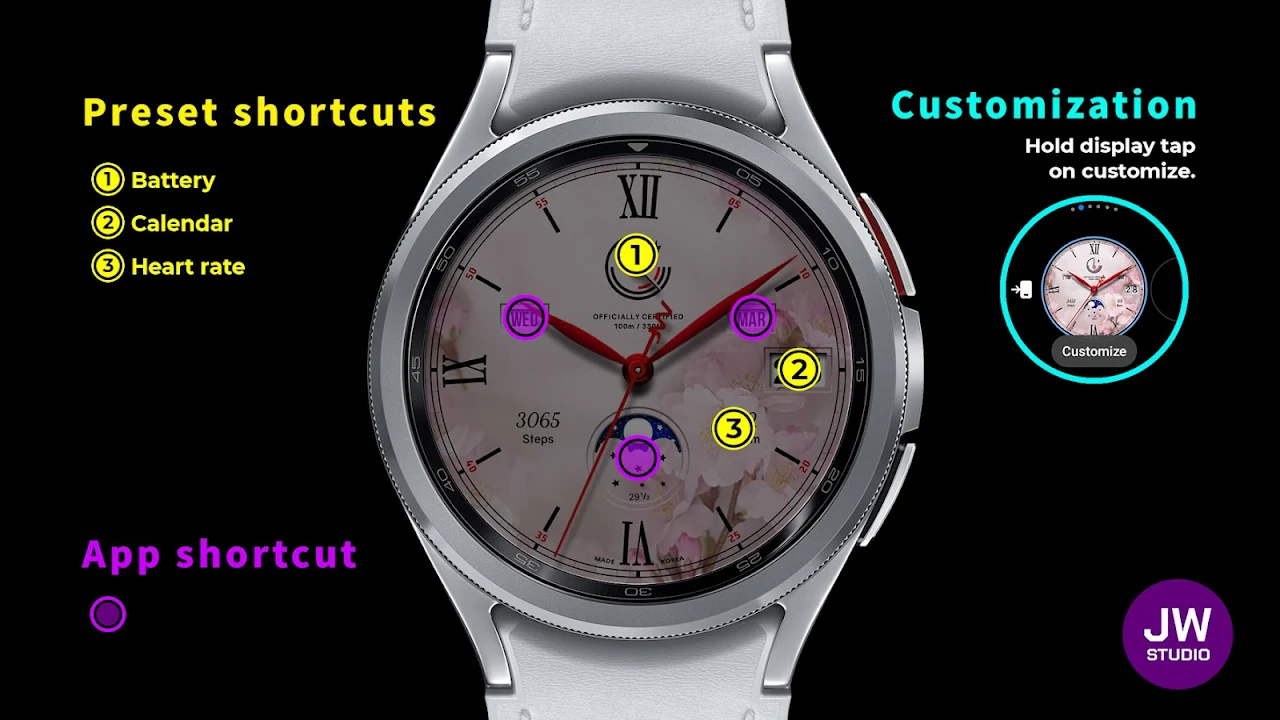 This watch face supports all Wear OS devices with API level 30 or higher, such as Samsung Galaxy Watch 4, 5, 6, 7, 8, Pixel Watch, etc.