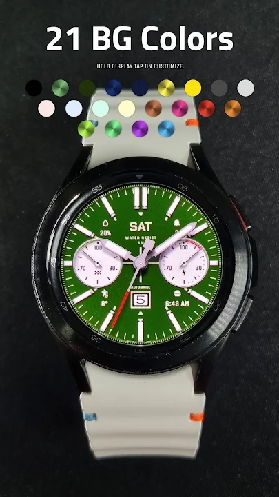 This watch face supports all Wear OS devices with API level 30 or higher, such as Samsung Galaxy Watch 4, 5, 6, 7, Pixel Watch, etc.
