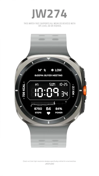該錶盤支援所有 API 等級 30 或更高的 Wear OS 設備,例如 Samsung Galaxy Watch 4、5、6、7、Pixel Watch 等。