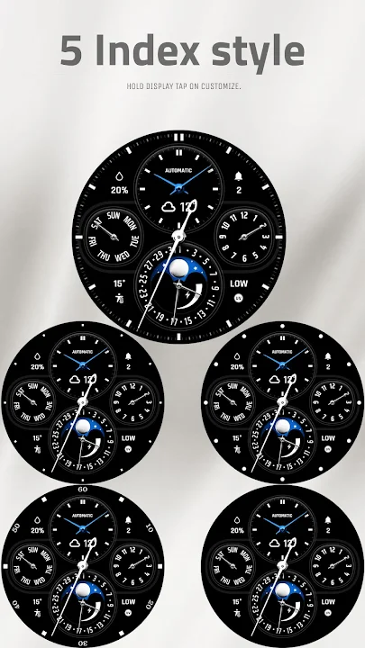 此表盘支持所有 API 级别 34 或更高的 WearOS 5 设备,例如三星 Galaxy Watch 4、5、6、7、Pixel Watch 等。