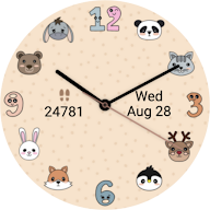卡哇伊主题模拟钟面,包含三个主题:动物、食物和数字。