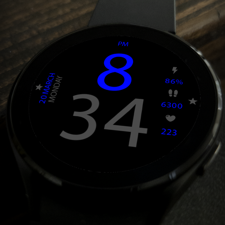 Key036 是一款设计简单的数字表盘,适合 Wear OS 用户