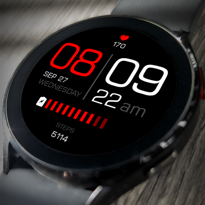Key075 是一款採用現代設計、適用於 Wear OS 的數位錶盤。 Key075 擁有 8 種吸引人的時尚設計色彩主題,並具有以下特點: