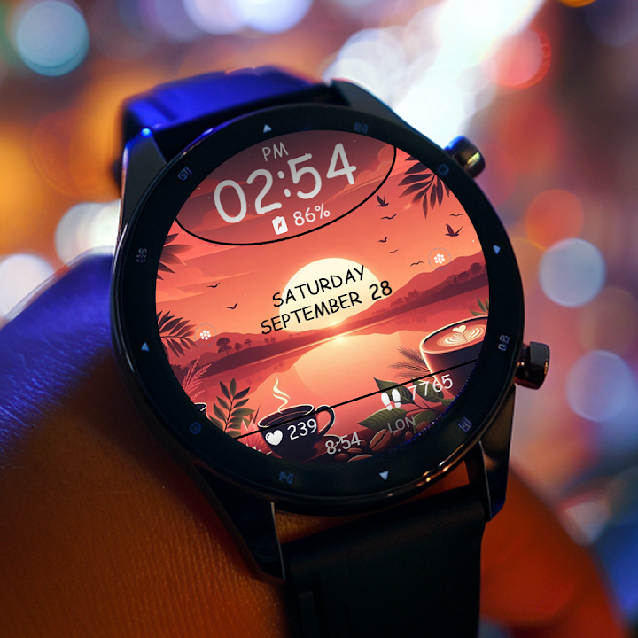 Key WF44 is a Digital Watch Face with Coffee Sunset Design for Wear OS