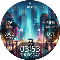 Key WF50 是一款采用城市之光设计、适用于 Wear OS 的数字表盘。 Key WF50展现了城市的夜景之美。 Key WF50 具有背景样式,为用户的智能手表提供更多选择。