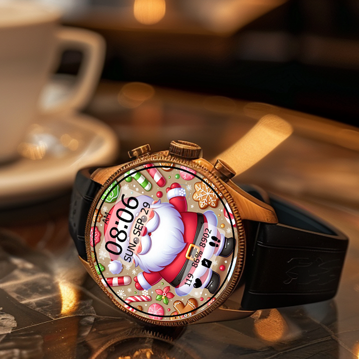 Key WF52 is a Digital Watch Face with Santa Claus Design for Wear OS