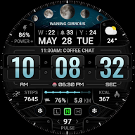 - Steps Count , Distance calculate KM., Heart Rate , Battery Level , Moon Phase , unread message count , Next event , Calories calculate , Sunrise and Sunset time ,