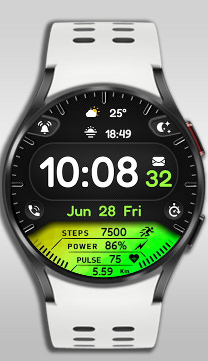 Dial Features:Different color options-Alarm-Sleep-Phone-Timer-Sunset-Sunrise-Steps-Power-Km-Pulse-Message-Weather complications-Digital clock-Date-Aod Screen-For Wear OS