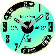 錶盤特點:不同顏色選項-步數-公里-脈衝-大卡-功率-雙時間-天氣複雜性-類比時鐘-日期-Aod螢幕