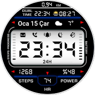 表盘功能:不同颜色选项-消息-闹钟-电话-睡眠-计时器-距离选项(公里和英里)-步数-脉冲-功率-双时间-日落-日出-天气并发症-数字时钟-日期-12/24小时- Am/Pm-Aod 屏幕-For Wear OS