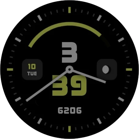 Lightness 是适用于 Wear OS 的混合而优雅的表盘。中心是数字格式的时间(12 小时制和 24 小时制)和模拟时间。下部有台阶。右侧和左侧的两个复杂功能分别指示月相和日期。在上部区域,通过弧线可以一目了然地检查电池状态。常亮显示模式与标准模式相同,但秒针除外。