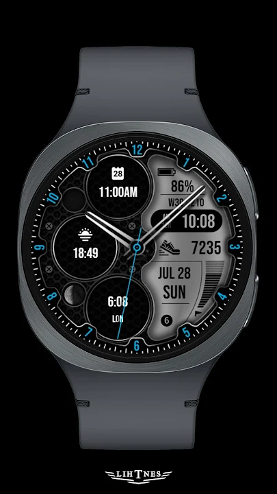 ✦ 日期、日、月、電池電量和步數一目了然。