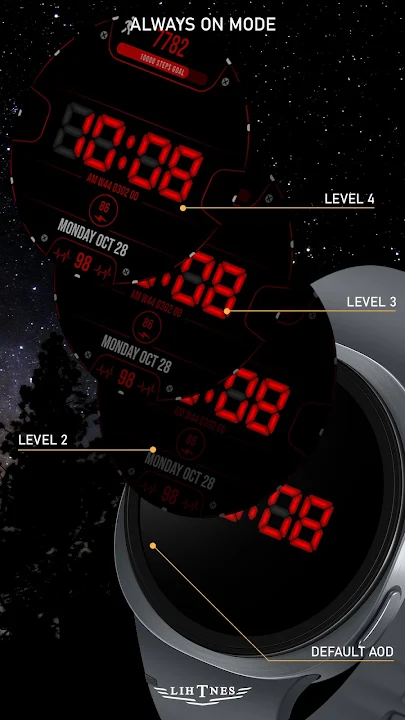 ✦ 4 种不同的背景亮度级别可节省电池寿命并根据您的需要提供更好的外观。