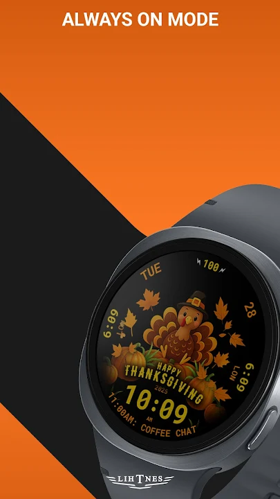 用“火鸡时间”——动态感恩节表盘,庆祝感恩节的喜悦!这款温暖欢乐的设计将感恩节的气氛带到您的智能手表上——陀螺仪感应火鸡动画、飘落的秋叶以及闪耀的月光背景。每一次看表,都仿佛置身于一个欢乐的感恩节时刻!