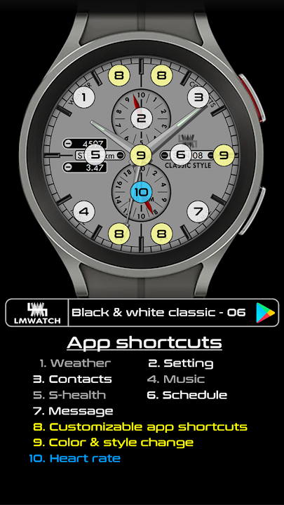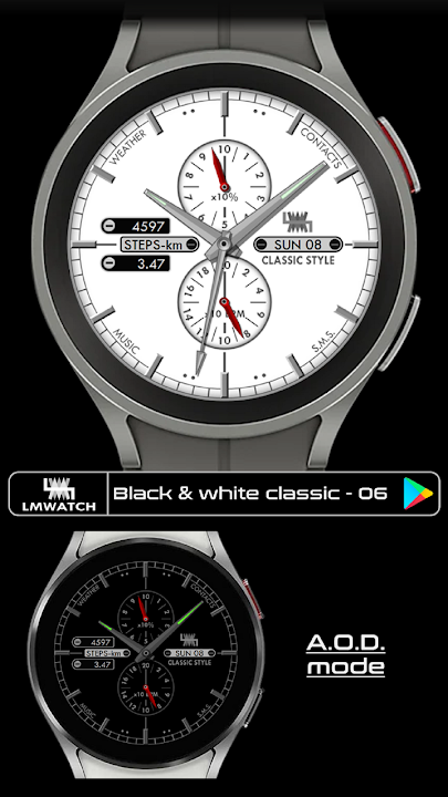 LMwatch 經典錶盤,適用於 Wear OS 裝置。