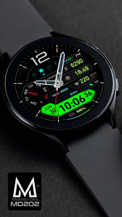 MD202 是一款由 Matteo Dini MD 设计的 Wear OS 混合表盘。
