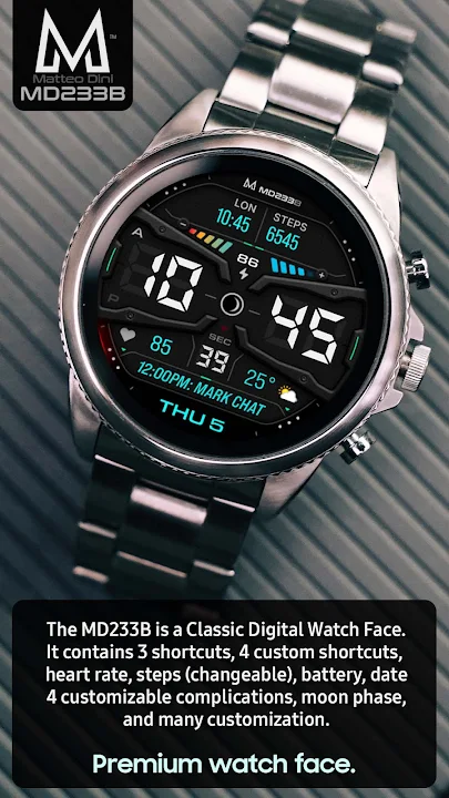 MD233B 是一款适用于 Wear OS 的经典数字表盘。